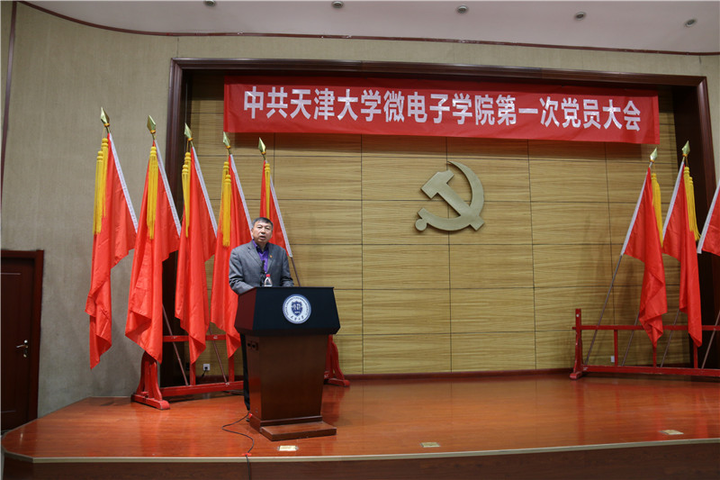 学院党委书记杨晋生作了题为《坚持立德树人,服务发展大局,为建成高水平的国家示范性微电子学院而努力奋斗》的工作报告。报告指出,一年来,在天津大学党委的正确领导下,天津大学微电子学院党委始终坚持党要管党、从严治党、围绕中心、服务大局的原则,组织师生党员全面学习贯彻党的十八大及系列会议精神,认真学习落实全国高校思想政治工作会议精神,深入学习、宣传和贯彻党的十九大精神,全面执行党的教育方针,大力开展党的思想建设、组织建设、作风建设、制度建设和反腐倡廉建设,推动“两学一做”学习教育常态化、制度化,团结和带领全院师生围绕立德树人的根本任务迎难而上、稳中求进,推进学院各项工作取得了良好的开局。在今后的一段时间里,面向新形势,我们必须紧跟新时代发展步伐,勇敢面对问题、困难和挑战,坚定信念、紧抓机遇、团结拼搏,为落实立德树人根本任务,全面服务发展大局,早日建成高水平国家示范性微电子学院而努力奋斗。