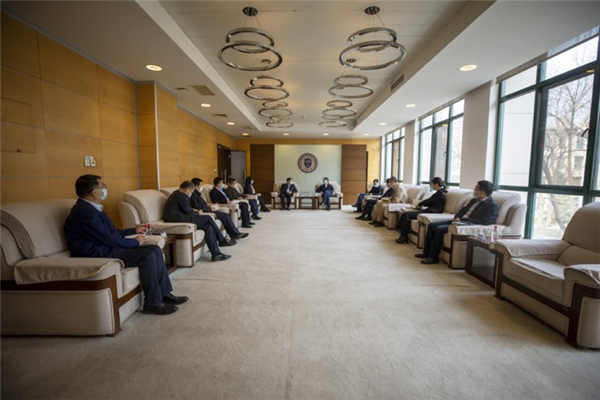 本站讯(通讯员 赵宇 摄影 刘延俊)3月24日,交通银行天津市分行党委书记、行长赵永强到访我校。天津大学校长金东寒会见赵永强一行并举行座谈。交通银行天津市分行党委副书记、副行长杨丽,党委委员、副行长李春生,天津大学党委常委、副校长王树新,党委常委、总会计师古瑶出席座谈。交通银行天津市分行相关业务负责人,天津大学财务处相关负责人参加座谈。