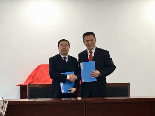 谢鹏程和孙佑海代表双方互签并交换协议。