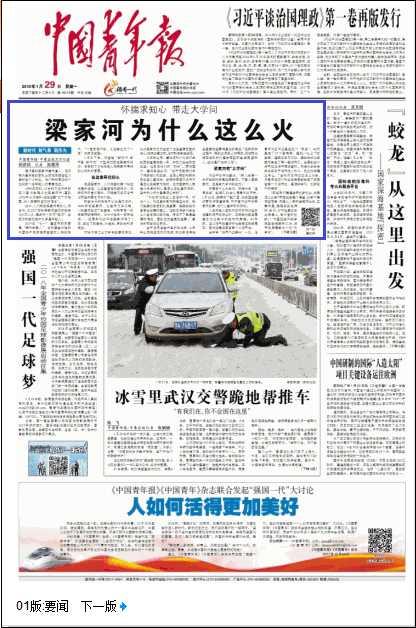 《中国青年报》1月29日头版头条
