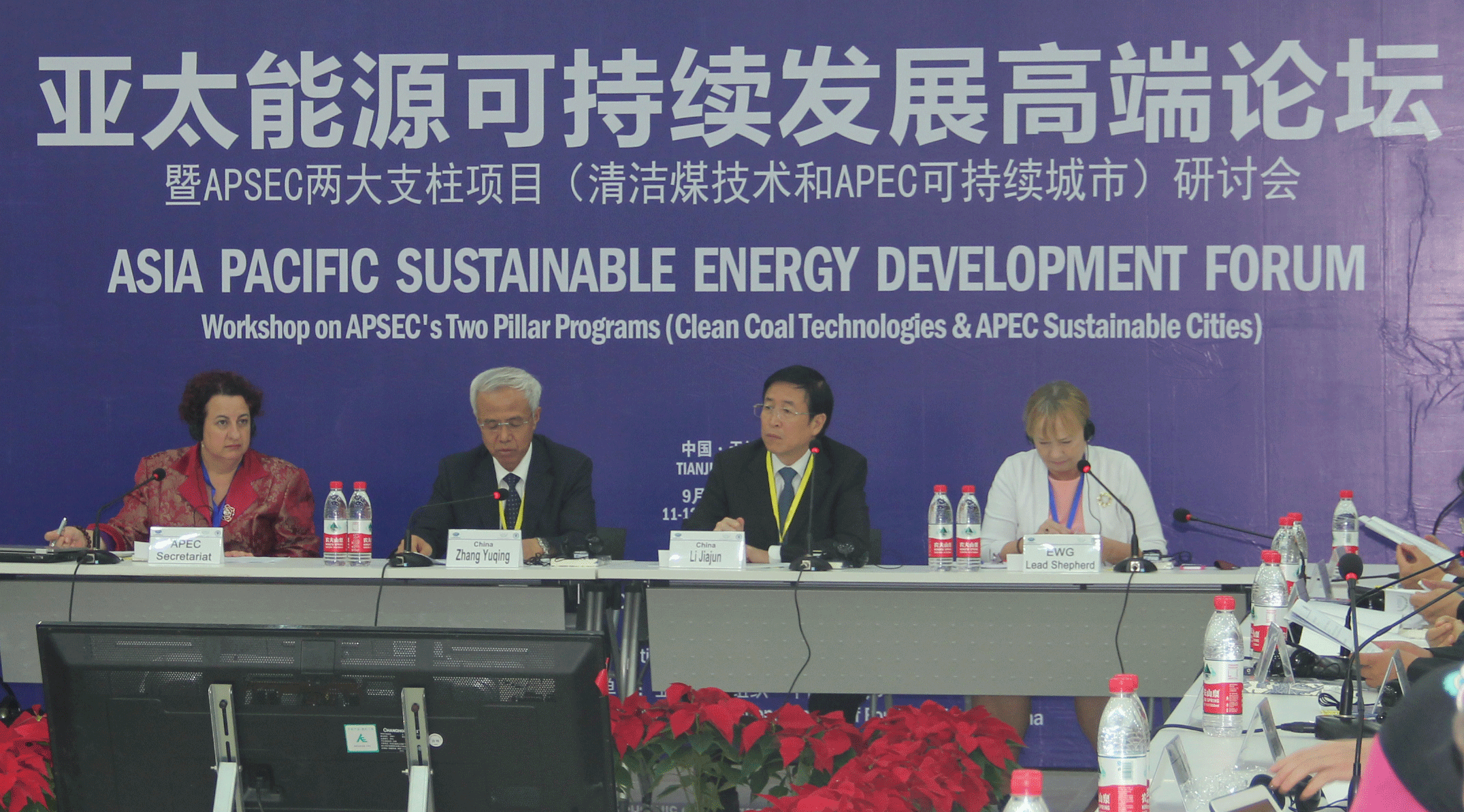 国家能源局副局长张玉清、APEC秘书处项目主管Penelope Howarth、APEC能源工作组秘书处主管Phyllis Yoshida、天津大学校长李家俊出席致辞