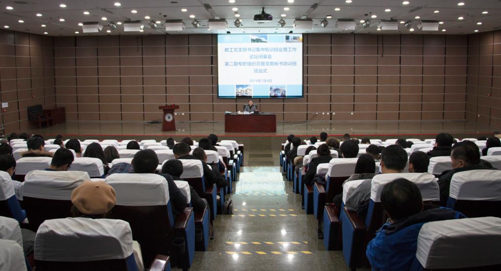 学校党委于2018年12月7日启动了2018年教工党支部书记集中轮训暨工作论坛,围绕新印发的《中国共产党支部工作条例(试行)》、新时代如何做好高校党建工作、学习贯彻全国教育大会精神等主题举办了一系列专题辅导报告;第二期专职组织员暨党务秘书培训于2018年11月2日启动,期间举办了习近平新时代中国特色社会主义思想、高校意识形态责任制等多场报告,并就党支部工作实务、党内统计工作等专题进行了学习交流。本次结业式,目的是进一步交流工作经验,提升工作水平,全面总结2018年我校基层党建工作成果,为2019年各项工作顺利开展筑牢基础。