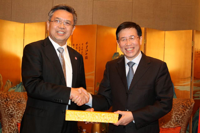 天津大学120周年校庆期间,校长李家俊向原天津大学校长、今南开大学校长龚克赠送中国第一张大学文凭“钦字第壹号”复制品
