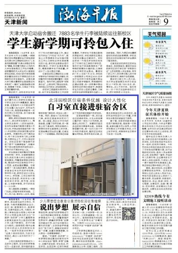 渤海早报讯 (记者邵隽)学生们最为关心的新校区宿舍也于昨日正式对外展露真容,整体来看,住宿条件十分优越且细节之处注重人性化设计,本科生均为四人间,每层宿舍楼都有一间洗衣房以及活动室,自习室也直接进驻了宿舍区。