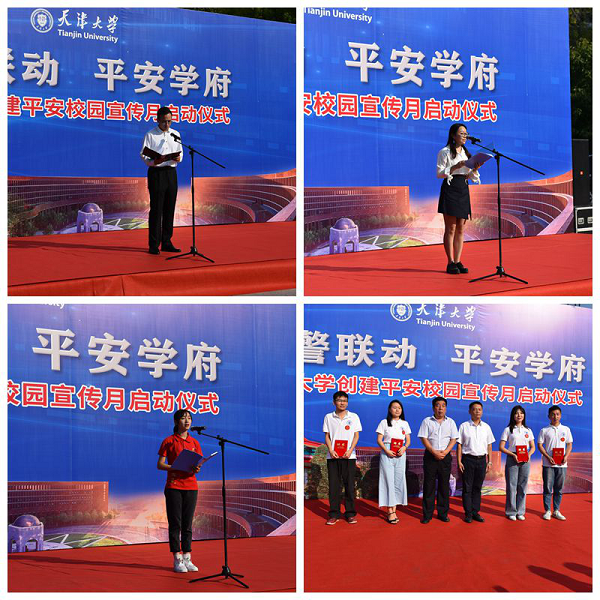 本站讯(通讯员 王首道)9月27日,由天津大学、南开区政法委、公安南开分局、学府街街道办事处联合举办的“校警联动 平安学府”天津大学创建平安校园宣传月活动正式启动,启动仪式在卫津路校区北洋广场举行。