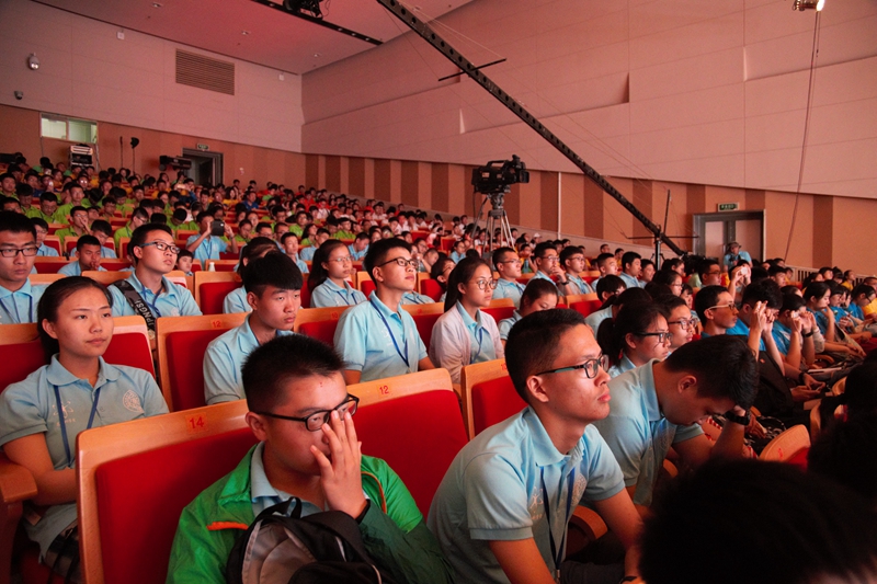欧阳院士提到,“美国阿波罗登月”并非骗局,所谓月球背面的“外星人”和“金字塔”也是谬论。他推翻 “飞机被外星人从百慕大运到月球上”的说法,用其精确的研究结果和严谨的逻辑推理解释真实月球上的点点滴滴。现场的高中生们仿佛身临其境,听得十分入神。