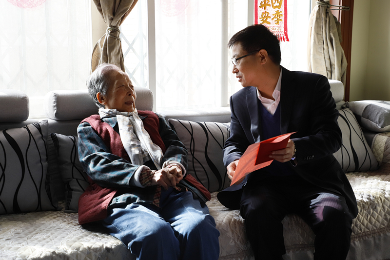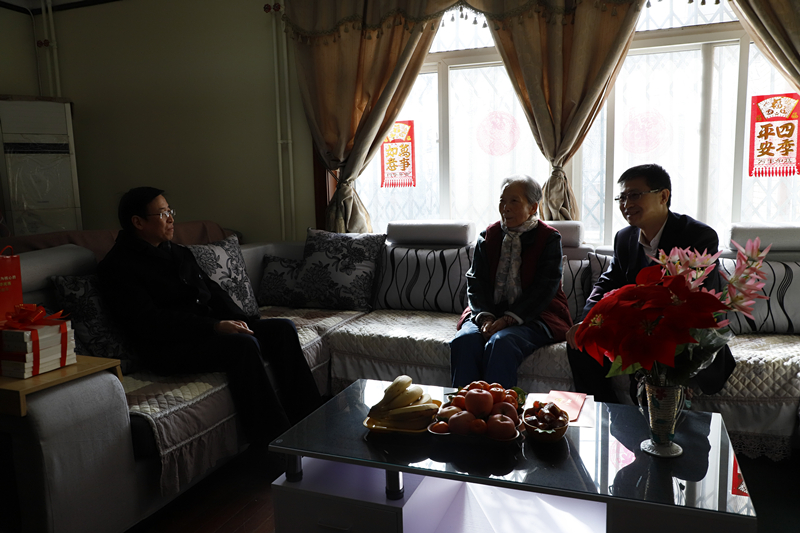 康义亲切询问了倪征的身体健康状况,向她拜年,并送上市委市政府的慰问信和慰问金。他希望老人多保重身体,祝愿她健康长寿。李玲代表家属向所有来访的领导表示感谢。李家俊详细询问了家中网络、取暖等情况,嘱咐家属生活上如果有困难可以随时提出来,学校会做好各方面保障工作。