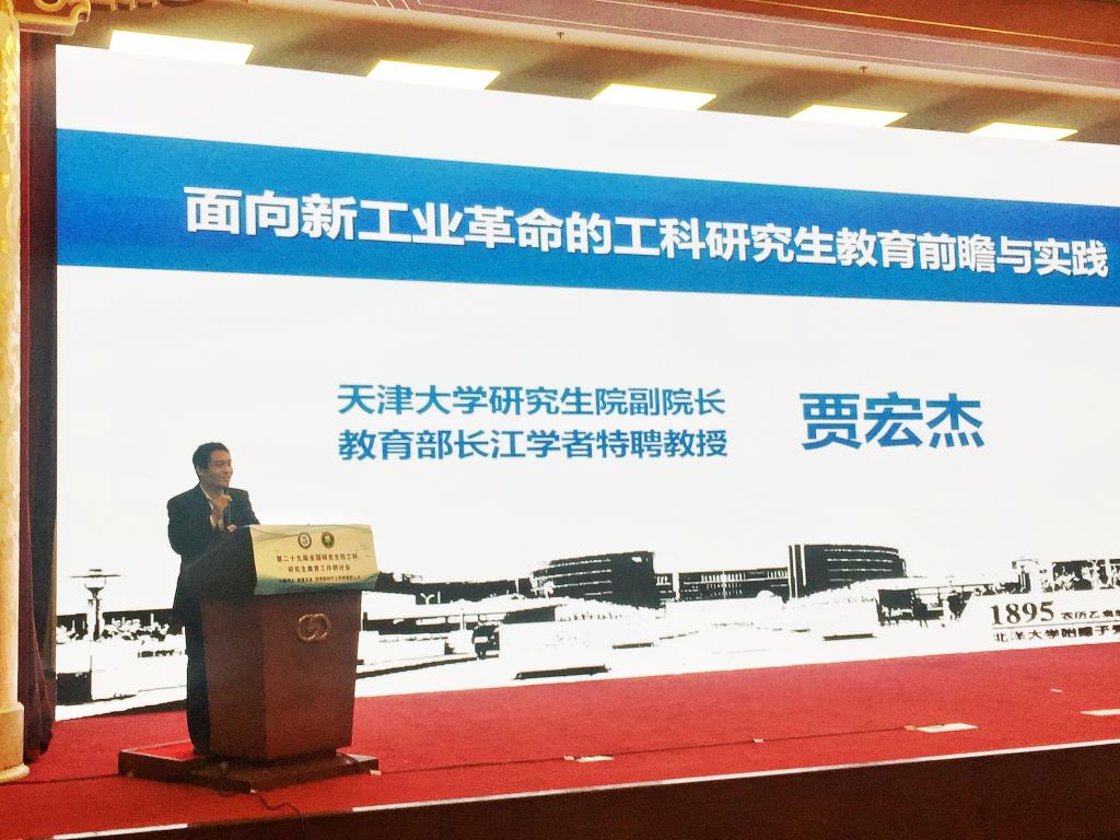 贾宏杰代表天津大学做了题为“面向新工业革命的工科研究生教育前瞻与实践”的大会报告。报告针对当前工科研究生教育面临的机遇与挑战,结合发展中面临的关键问题,从“以交叉融合为导向的综合学科布局、以创新能力为导向的教育教学体系、以服务需求为导向的体制机制改革”三方面,介绍了天津大学研究生教育在新工业革命背景下的前瞻性规划和创新性实践。贾宏杰在报告中指出,要从学科支撑、招生机制、导师制度与培养过程等各个方面深入推进研究生教育改革,真正推动我国实现由工程教育大国向工程教育强国的历史性转变,为建设现代化经济体系、实现高质量发展提供智力和人才支撑。