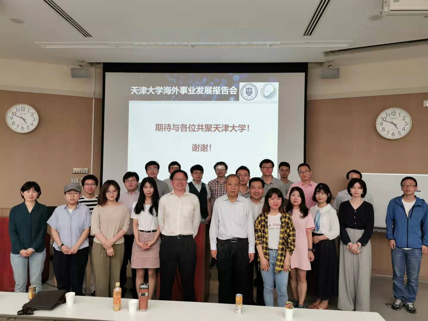在访问日本期间,天津大学在京都大学和东京大学分别召开了两场事业发展报告会。张力新介绍了天津大学在科学研究、人才引进、国际合作、学科布局等方面的发展现状,重点讲述了天津市的区位与资源优势、天津大学为青年人才搭建的发展平台与支撑条件等,并表示十分欢迎学子来天津大学发展自己的学术事业和生活。人事处副处长栗大超详细解读了国家、天津市与天津大学对人才引进、人事制度改革、薪酬体系等政策,介绍了学校为人才引进提供的全方位支持服务,并表示将竭尽全力为青年学者创造成就一流事业的一流条件,诚挚欢迎广大青年才俊到天津大学工作。建工学院副院长蒋明镜为参加报告会的学子分享了个人事业发展心得,他结合自身科研历程和内心感悟,以及天津大学相关平台支持介绍了青年人才的发展道路与经验,并表示国内的高速发展为青年学者提供了良好的发展机遇,希望有更多青年人才加盟天大,回到祖国成就一番事业。