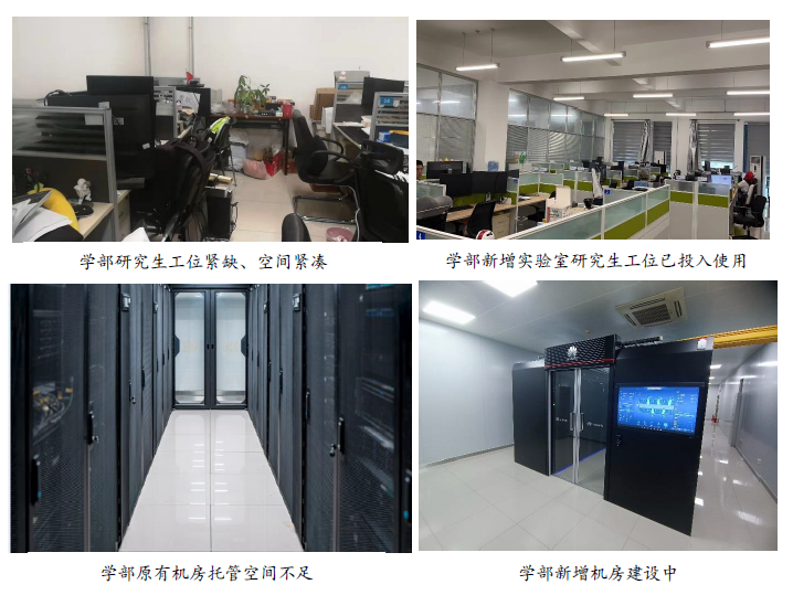 随着学部快速发展,原学部机房托管空间及算力需求不足的问题逐渐凸显,学部机房改造升级需求较为迫切。鉴于此,学部近期整体规划改造,新增机房1间,新增40个模块化机柜,购买新型大算力服务器30余台,将新旧集群重新规划,部署新型管理平台,后续为师生提供方便实用的、多种形式的计算服务。同时,学部对原有机房进行整体改造更新,改造建设配电、网络、集中管理专用机房,调整改造专用托管机房,更新机房空调、升级改造消防系统及网络系统、对机房供电改造提升容量、升级安全系统等。改造后机房配有操作室,既方便师生对托管机的各种使用形式及网络需求,又增强了机房的安全性和管理效率。机房升级改造后将为学部师生提供更优质的托管及计算服务,更好服务学部科研工作,赋能学部高质量发展。
