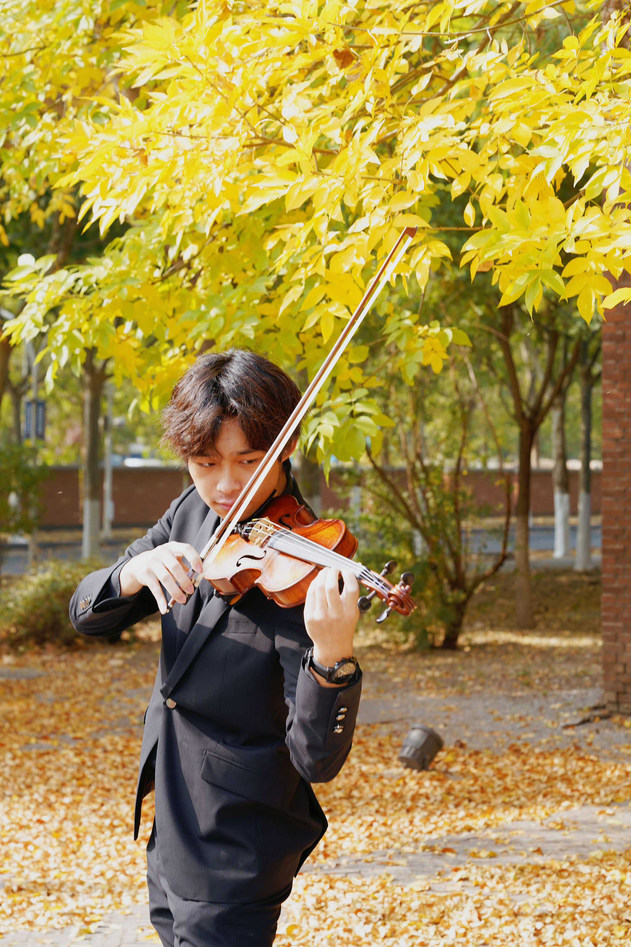《在秋风中绽放:北洋艺术团》是一组在秋天背景下拍摄的北洋艺术团的人物摄影作品。这一系列作品以天津大学秋日的美丽景致为底色,捕捉了艺术团成员们的精彩瞬间。金黄的树林、晚秋的阳光,这些元素都与艺术团成员们的表演和情感相呼应,为照片增添了一种动人的美感。