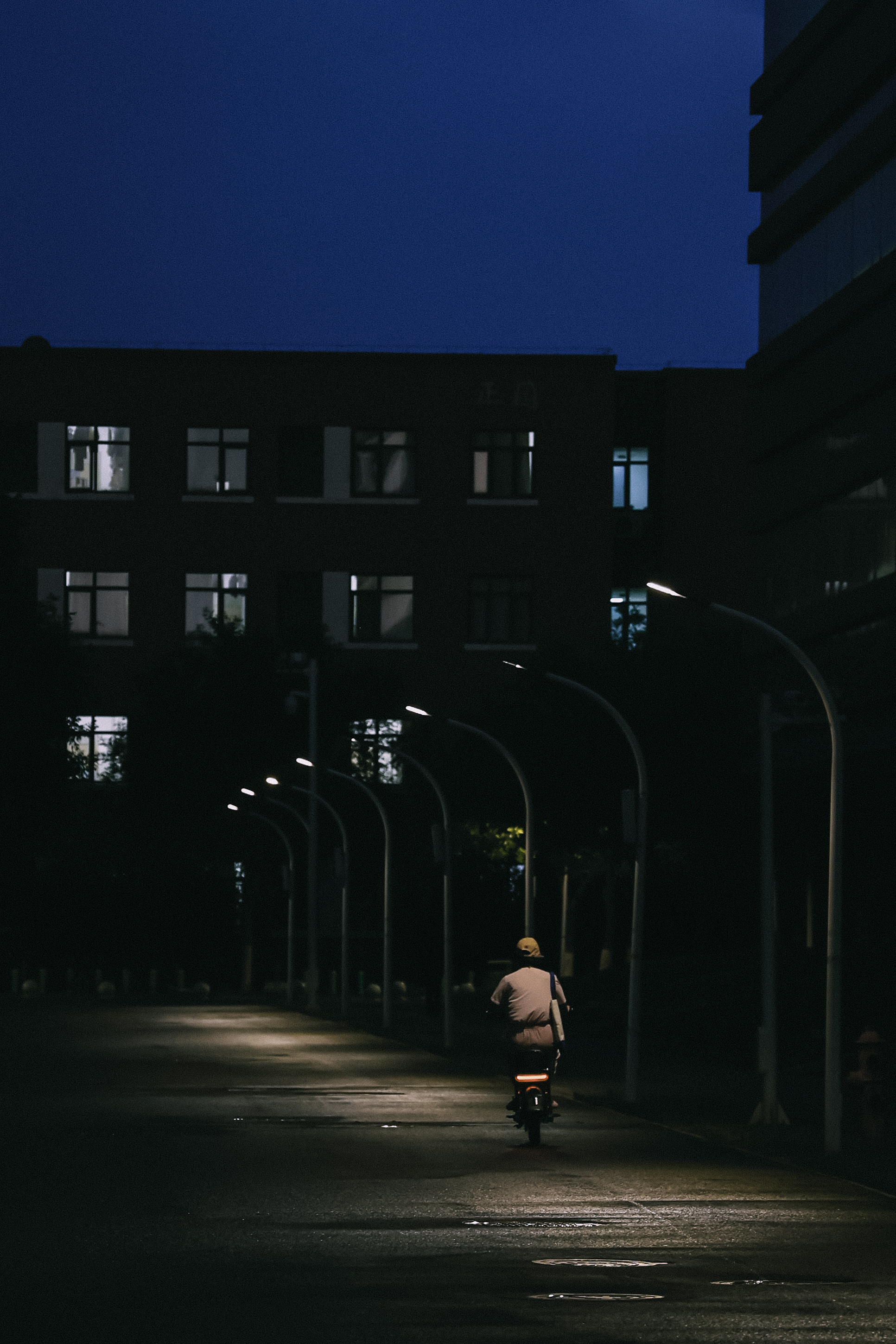 一位大学生独自穿越深邃的校园,电动车轻鸣,如星辰般划破寂静。月光在黑夜中舞动,投下细碎的银光,仿佛散落的星辰点缀着他的回归。这是大学生活的一刻,一个充满了无限可能的瞬间。或许他刚刚结束一场激情洋溢的聚会,或是从书山沉思而归。这一瞬捕捉了这片星夜中的孤独,却在孤独中描绘了大学生活的辉煌。