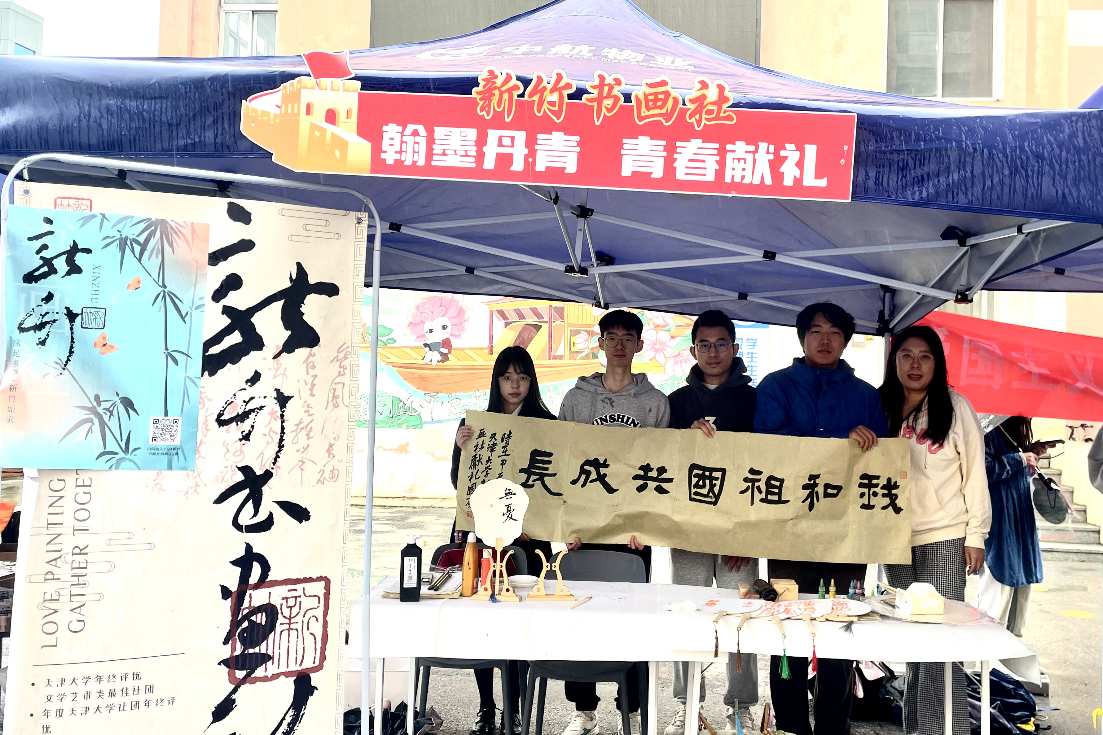天津大学鹏翔学生社区还举办乐以“我和祖国共成长”为主题的游园会:“新时代伟大成就连连看”环节,学生们纷纷展现自己的知识储备,一口气通关;“致敬英雄”经典军歌接龙活动将现场气氛推向高潮,一首首激昂的军歌在师生间传唱,传递着对英雄的无限敬仰与怀念;法学院特别设立的《爱国主义教育法》知识竞答摊位前人头攒动,同学们通过答题抽奖的形式,加深了对我国新实施法律的理解;书法爱好者们以笔墨寄情,书写对祖国的深情厚谊和美好祝愿;建筑学院学生绘制的“祖国需要 天大志愿”主题墙绘也成为了一道道亮丽的风景线。