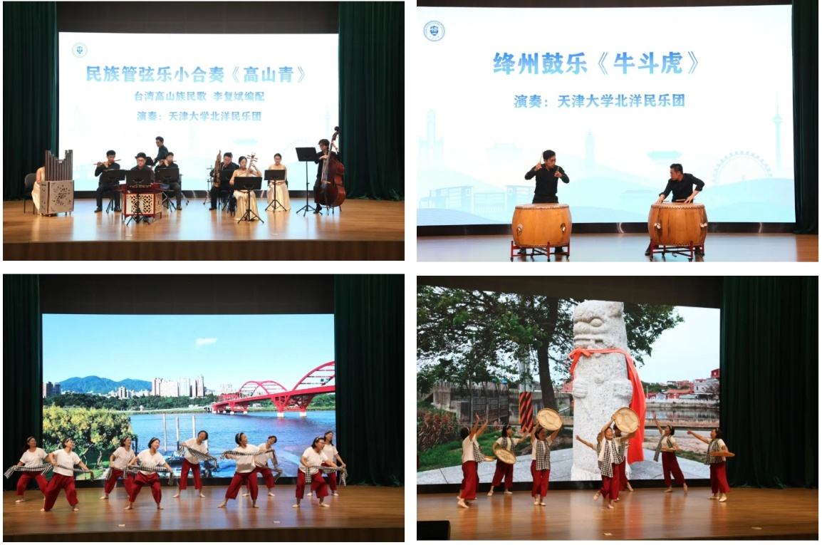 活动还进行了文艺交流演出。天津大学北洋艺术团民乐团的同学们表演了民族管弦乐小合奏《高山青》、绛州鼓乐《牛斗虎》。金门舞蹈团队表演了当地特色舞蹈《欢迎来金门》。文化研习活动参访团参观了天津大学北洋园校区郑东图书馆、“天津大学十年成就展”、北洋园校区沙盘。