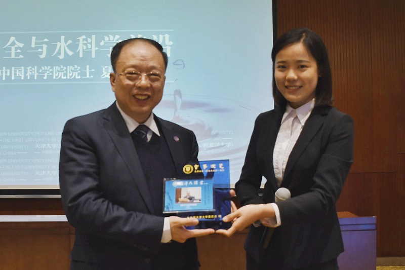 在师生互动环节,一位水利水电专业的同学就“未来的水利人如何为国家未完成的南水北调西线工程做出贡献”向夏军提问。夏军也对此给出了自己独到的见解,使整场讲座的内容得到了进一步的深化。学生代表为夏军送上了北洋大讲堂的精美纪念品。