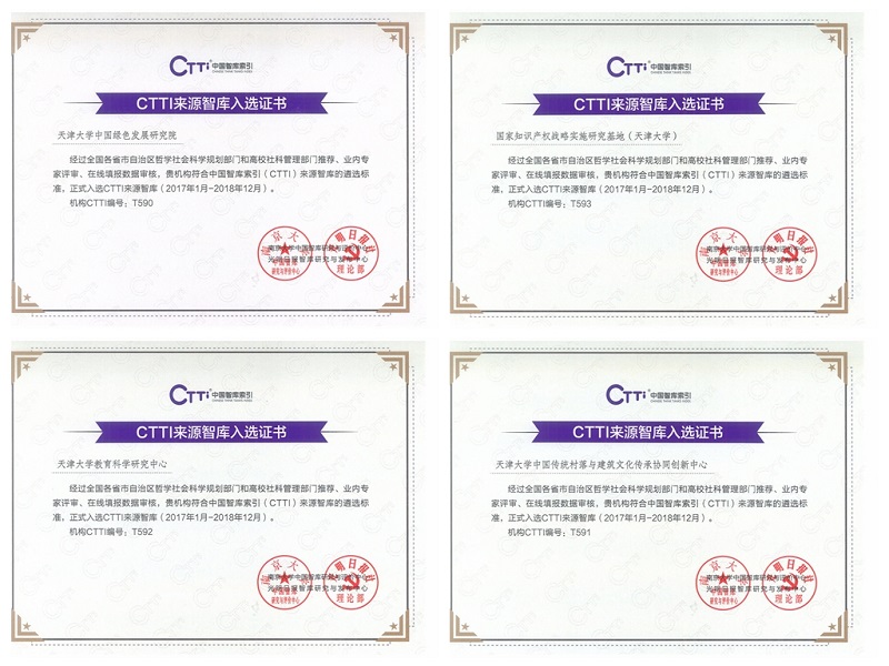 会上发布了《中国智库索引CTTI 2017发展报告》、CTTI最新来源智库增补名单、CTTI二期建设进度及“思想理论融媒体传播工程”成果等。继中国文化遗产保护国际研究中心2016年入选CTTI来源智库后,天津大学国家知识产权战略实施研究基地(天津大学)、中国绿色发展研究院、中国传统村落与建筑文化传承协同创新中心、教育科学研究中心四家智库联袂入选中国智库索引(CTTI)来源智库。至此,天津大学已有五家智库入选中国智库索引(CTTI)来源智库。