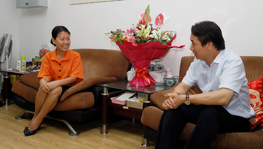 本站讯(通讯员 温锌勇 摄影 陈晓金)9月6日上午,天津市总工会副主席葛英秋、市教育工会副主席张家翔一行来到学校,看望慰问了全国劳动模范、全国优秀党务工作者、药学院党委书记冯翠玲,并向全体教职员工送上节日的祝福和问候。校工会副主席陈宝禄、药学院工会主席杜云飞等陪同慰问。