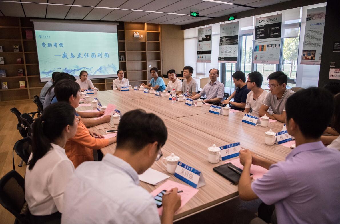 在绿色通道充分了解情况后,田祖荫一行来到天津大学郑东图书馆会议室,与学校学生资助管理中心教师、学院资助工作辅导员代表、受助学生代表等一起参加了“资助有约——我与主任面对面”的座谈会,重点听取并详细记录了基层资助工作者和学生对资助育人工作的意见和建议,并对大家的困惑和问题进行了解答。与会教师和学生就地方支持和信息共享、发展型资助、多元化设置奖学金、传统观念对助学贷款的限制和应贷尽贷等问题做了广泛而深入的交流。田祖荫特别询问了学院辅导员能不能及时发现和处理学生办理非法“校园贷”的问题。他对天大辅导员能够通过常下宿舍、与学生谈心、多与学生干部沟通等渠道正面宣传国家资助政策、及时关注学生的异常消费行为等以尽可能把非法“校园贷”问题扼杀在萌芽中,给予了肯定。