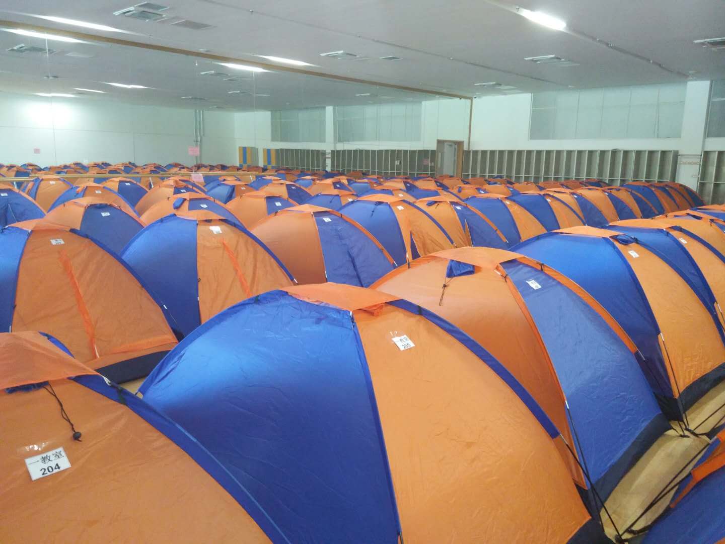 “这些帐篷全部是由老师同学们亲手搭建的,600多个帐篷,搭了三天。电源、空调、淋浴、饮水机一应俱全。”软件学院的龙润玥同学介绍道。在体育馆门口,值班的六位同学正在为入住家长办理手续、引导家长到分配好的住宿点、介绍场馆内的基本设施。“24小时都会有师生值班”,北洋新媒体中心社团主席韩齐悦同学说,这样保证了无论多晚,家长都可以方便入住。