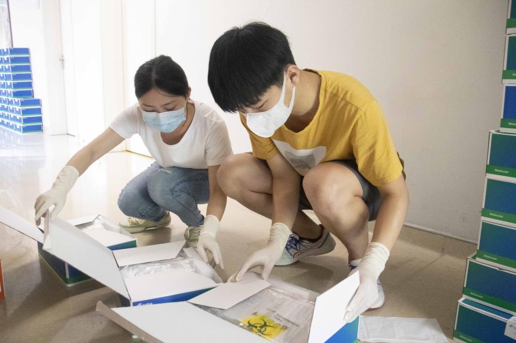 在北洋园校区,“核酸检测物资整备”服务项目的志愿者们,已经上岗四周,52人次的志愿者轮番接力,投入到了剪标签、贴标签、清点消杀瓶、清点核酸棉签和配置核酸试剂等活动中,协助核酸检测工作者整备物资,为医护人员减轻负担。
