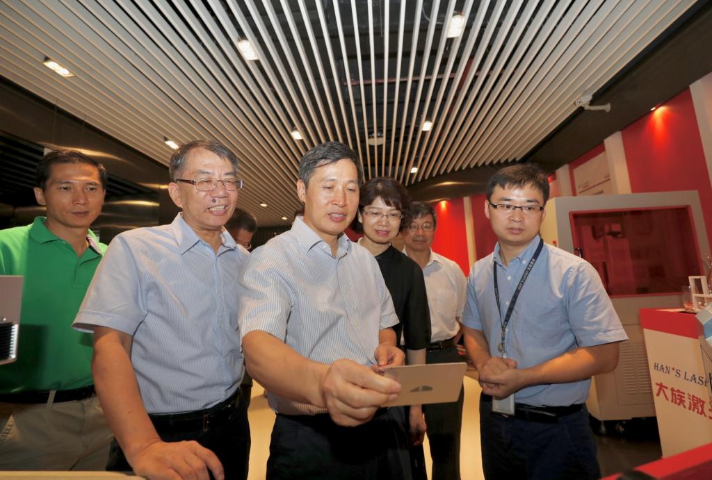 深圳大族激光是世界知名的激光加工设备生产厂商、国家级创新型试点企业。钟登华走进大族激光的装备产品展厅,了解企业发展历程和技术产品。在随后的座谈中,他详细介绍了天津大学在新工科建设方面的规划探索以及人才培养特色。他指出,深化产教融合是培养新工科人才实践能力的有效支撑,要进一步探索高校与重点企业、科研院所之间灵活的协同育人机制和模式,让学生能够带着问题学习、带着思考实践。