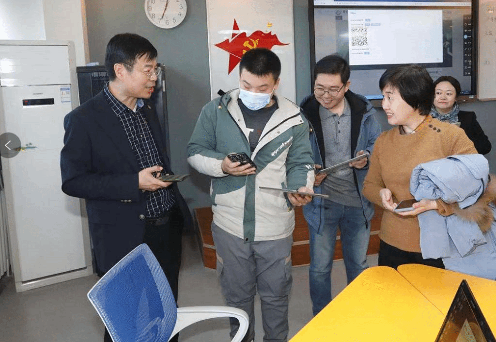 走进第19教学楼205智慧教室,金东寒详细了解了智慧教室的功能介绍,扫码安装了学生客户端,体验智慧教室的分组教学、课堂互动、投屏等功能的实际效果,进一步了解教室建设成本、利用率、硬件便捷度等情况。教务处还就智慧教室的教学工具、学情分析、录播系统的作用等进行了介绍。