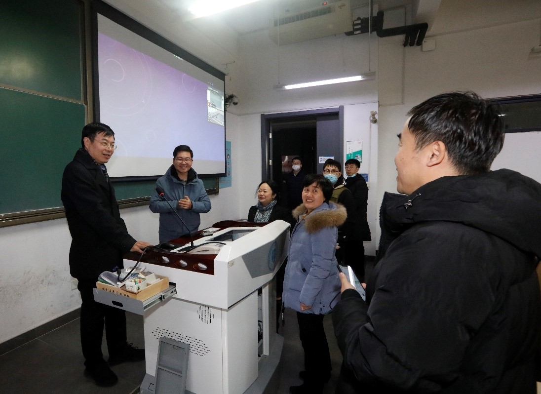 本站讯(资产处供稿 摄影 唐蒙)12月23日,天津大学校长金东寒到卫津路校区部分教学楼内实地调研,察看我校多媒体教室及智慧教室的建设和使用情况。教务处、资产处相关负责同志陪同调研。
