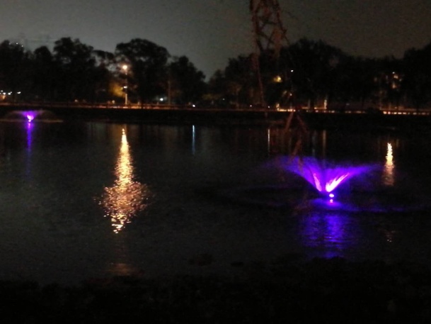 本站讯 (通讯员 吴婷 耿福建)天津大学卫津路校区内错落分布的四个湖面,宛若4 颗明珠点缀着美丽如画的校园。天大保护校园湖水资源专项治理工作一刻也不曾放松,继去年进行友谊湖污水改造、堤岸水生植物景观试种成之后,今年为改善水质经过多方调研,计划采用物理方法和化学方法相结合的方式进行处理,近期维修管理科在青年湖、爱晚湖、友谊湖架设了曝气喷泉设施,通过增加水份氧含量的方式,有效改善水质,维持生态平衡。同时安装了灯光设施,其优美的喷泉造型和独特的灯光造景功效相结合增加了观赏效果,吸引了广大师生驻足观赏拍照。