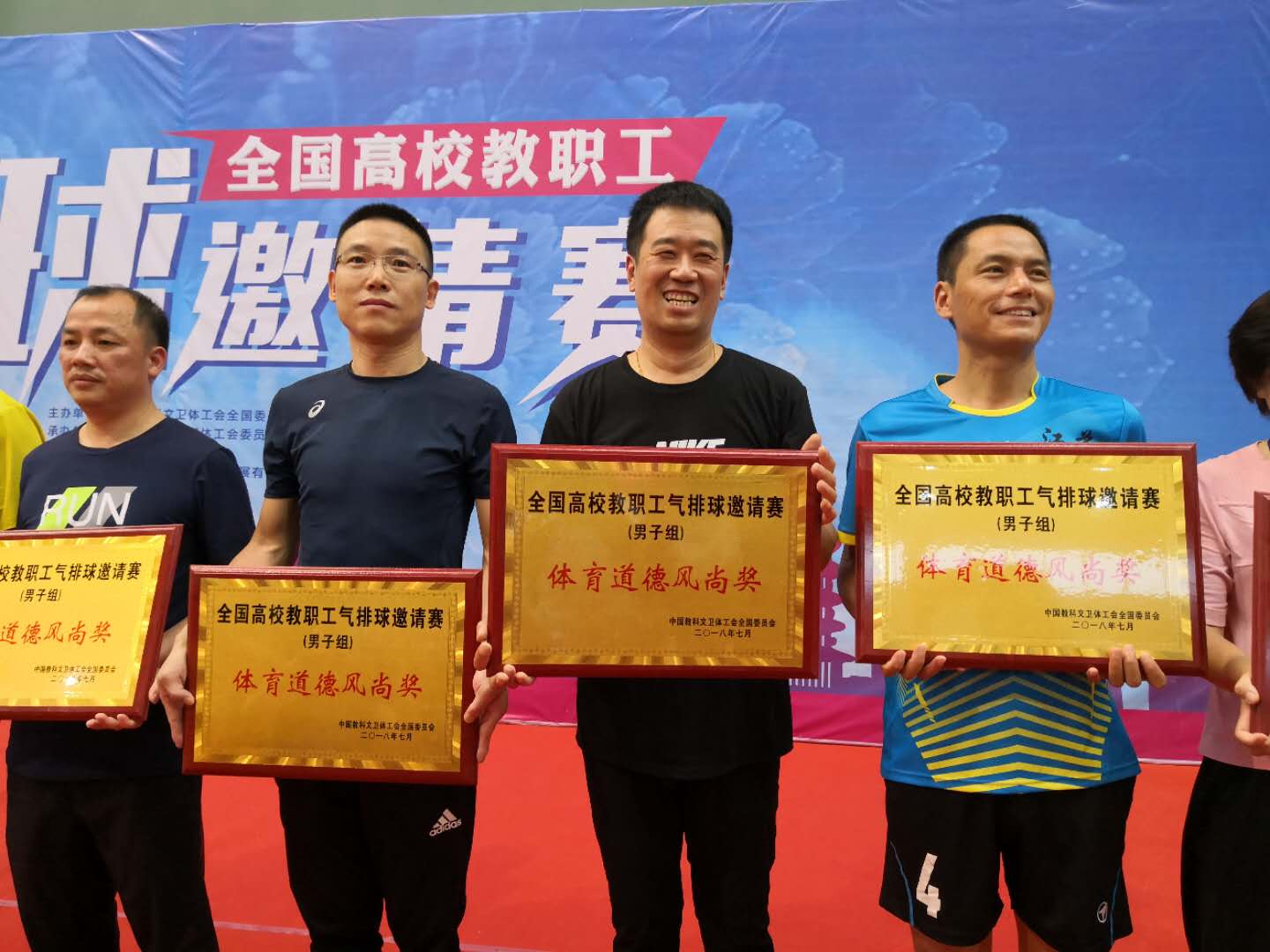 本站讯(通讯员 张璐 贾欣岚)6月29日至7月1日,由中国教科文卫体工会主办的全国高校教职工气排球邀请赛在洛阳举行。来自全国23个省市自治区的46支代表队参加了比赛。由天津市教育工会干部刘丽芬任领队,天津市体育学院张永奎任教练,天津大学16名教职工担任队员的男子、女子气排球队代表天津市参加了本次比赛。经过全队的积极备战和队员们的奋力拼搏,天津大学男女气排球队双双获得“体育道德风尚奖”,天津市教育工会荣获“优秀组织奖”。