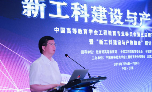 本站讯(通讯员车熙 摄影唐蒙 丁宇)2018年7月7日-8日,由中国高等教育学会工程教育专业委员会(CSEE)、天津大学主办的中国高等教育学会工程教育专业委员会第五届理事会第三次会议暨“新工科建设与产教融合”研讨会在天津隆重召开。此次会议得到教育部高等教育司、中国工程院教育委员会、中国高等教育学会的大力支持。来自全国百余所高校、相关行业协会、学会、企业以及出版单位的500余名领导和代表参加此次研讨会,共同探讨产教融合典型案例与成功经验,推进新工科的建设与发展。本次会议的主题为“新工科建设与产教融合”,旨在通过总结目前新工科建设的指导理论和实践经验,探讨新工科建设背景下产教融合的现状和发展趋势,进一步探索出符合中国国情、具有中国特色的新工科建设路径。