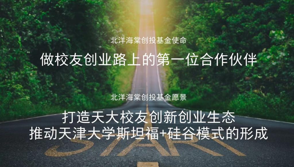 北洋海棠是在天津大学校友会的组织下,由天津大学知名校友发起设立的创投基金。这支基金成立的初心是——做校友创业路上的第一个合作伙伴。