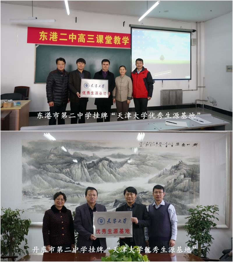11月26日,“天津大学优秀生源基地”授牌仪式分别在东港市第二中学和丹东市第二中学举行,谷钰代表我校授予两所中学“天津大学优秀生源基地”称号,希望两校继续为我校输送更多优秀毕业生。当天下午,傅利平为丹东市第二中学师生作了专题科普报告,受到了中学师生好评。