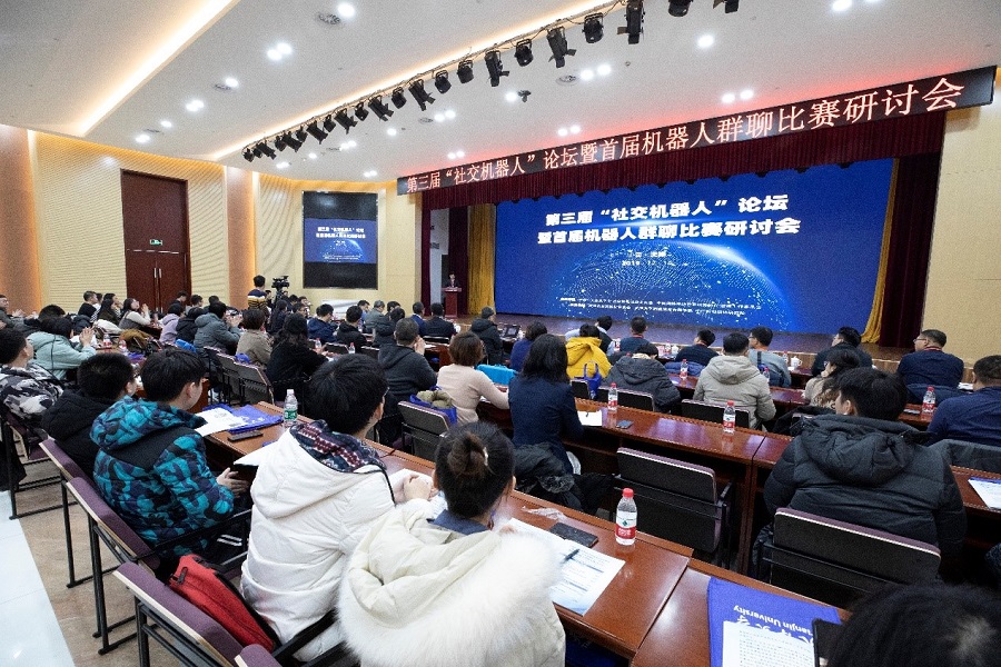 本站讯(通讯员 李晋馥 摄影 刘延俊)2019年12月14日,由中国中文信息学会社会媒体处理专委会和中国网络视听节目服务协会音频工作委员会指导,天津滨海高新区管委会、天津大学新媒体与传播学院以及中广新型媒体研究院联合承办的第三届“社交机器人”论坛暨首届机器人群聊比赛研讨会,在滨海高新区举办。高新区管委会副主任王洪,天津大学党委常委、组织部部长贾启君在会前会见了部分专家和参赛队伍代表。