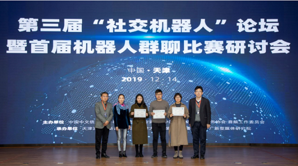 天津大学张鹏副教授指导的队伍FunNLP,获得首届机器人群聊大赛一等奖,也是本次比赛的第一名。张鹏说之所以参加这个比赛是觉得这个比赛非常有趣,这样由多个社交机器人同步对话的比赛在国内外都比较少,也希望通过比赛尝试将多智能体强化学习的方法应用在自然对话场景中,优化社交机器人在不同上下文语境下的谈话策略。