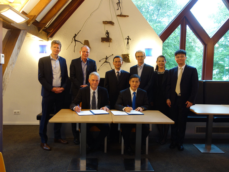 9月8日, 钟登华一行访问了荷兰特文特大学,受到Thom Palstra校长和同事们的热情欢迎。特文特大学科学与技术学院院长Hans Hilgenkamp、分子纳米制造中心主任Jurriaan Huskens、化工与纳米技术中心项目负责人Ben Betlem,以及中国项目负责人Louis Winnubst等人分别介绍了该校通过将科技通识课程与专业课程相结合的方式培养学生,通过搭建跨学科平台推动前沿科技合作,和培养学生创新和创业能力方面所取得的突出成果,以及近年来与中国高校开展合作的情况。钟登华校长一行向特文特大学的同事们介绍了天津大学近年来在科学研究、人才培养、国际合作、参与国际认证等方面所取得的成绩。双方就进一步开展教学和科研合作进行了深入的探讨。钟登华校长和Thom Palstra校长代表两校签署了《天津大学与特文特大学学生交换协议》。代表团还参观了特文特大学纳米技术实验室、化工高压实验室、技术设计实验室,以及医学与工学结合的医疗技术实验中心,对该中心通过医工结合的手段培养新型临床人才的模式,以及实验室的实验材料管理、废物清理等的精细化管理方式留下了深刻的印象。