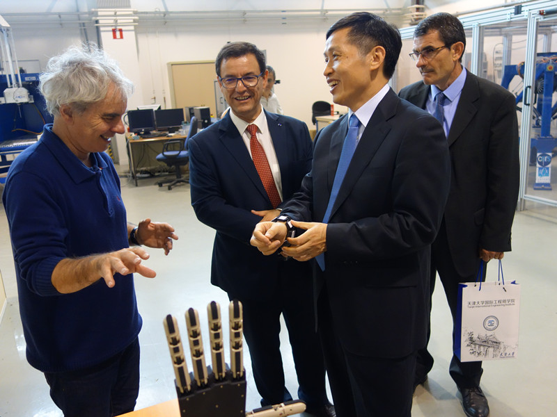 本站讯(通讯员 杨福玲)9月6日,天津大学校长钟登华率团访问法国南特中央理工学院。代表团受到了Armel de la Bourdonnaye校长、主管国际合作事务的副校长Fouad Bennis、主管科研的副校长Nicolas Moes以及负责国际合作事务相关人员的热情欢迎。钟登华校长简要介绍了天津大学的情况,代表团其他成员介绍了天大的历史,以及建校122年来在各方面取得的成绩,特别是在借鉴法国工程师教育的理念,开展工程教育改革以来,取得法国教育部工程师职衔委员会(CTI)为期6年认证的成绩。南特中央理工学院水动力实验中心负责人、波浪能项目负责人、自动化与机器人实验室负责人等分别介绍了他们所从事的科研工作。双方就进一步开展教育和科研合作进行了深入的探讨。钟登华校长和Armel de la Bourdonnaye校长代表两校签署了《天津大学与南特中央理工学院双硕士项目协议》。钟登华校长一行分别参观了南特中央理工学院的水动力实验室、波浪能实验室、土木工程实验室和自动化与机器人实验室。双方对于在地震测试平台方面开展进一步科研合作达成共识。在南特期间,钟登华校长还看望了在该校交流学习的天大学子。