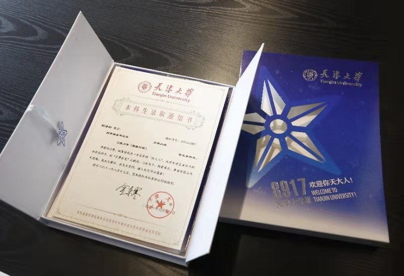 据了解,天津大学今年的通知书套盒创意源自一颗由天津大学校名命名的小行星,寓意新生成为灿烂星河中冉冉升起的新星。套盒内除了冯骥才先生主编的《天津文化地图》外,还装有校徽、手绘地图、新生入学手册等特色礼物,学生们可以在通知书中感受百年学府的历史文化之美,充分体现学校对于新时代“追星人”的期许。