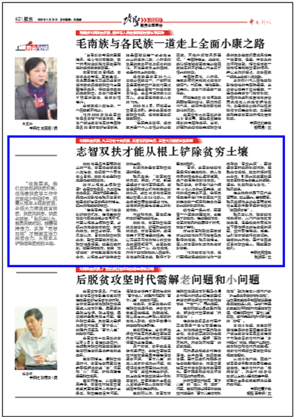 【聚焦两会】中国新闻报:张凤宝:志智双扶才能从根上铲除贫穷土壤