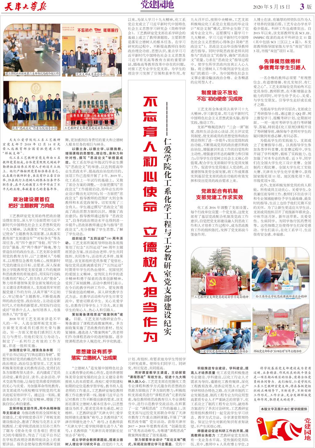 ●不忘育人初心使命 立德树人担当作为 —— 仁爱学院化工系化学工程与工艺教研室党支部建设纪实