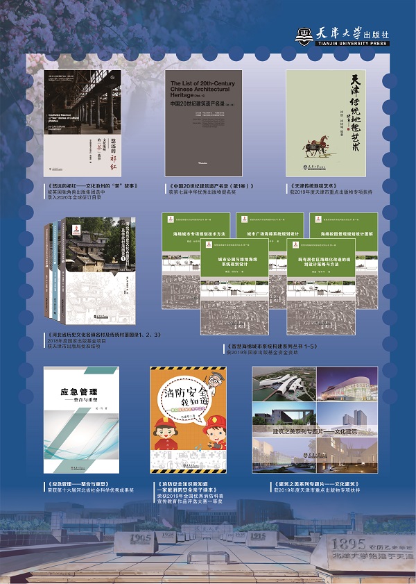 2019年,天津大学出版社深入学习贯彻党的十九大、十九届二中、三中、四中全会精神,以习近平新时代中国特色社会主义思想为指导,深入开展“不忘初心、牢记使命”主题教育,坚持中国特色社会主义文化发展道路,坚持以人民为中心的生产导向,遵循出版生产规律,坚持把社会效益放在首位、社会效益和经济效益相统一的工作指导思想,坚持围绕学校中心任务开展出版工作,坚持“稳定规模、优化结构、提高质量、增进效益”工作思路,多措并举,脚踏实地,稳中求进。全年共出版图书549种,其中新书245种,重印书304种。其中,1套图书获得2019年国家出版基金项目资助,1个国家出版基金项目顺利结项,1个融媒体出版项目成功入围国家新闻出版署2019年度数字出版精品遴选推荐计划;1本图书入选河北省科技厅科普图书项目,3本图书获2019年度天津市重点出版物专项扶持;1本图书荣获第七届中华优秀出版物提名奖,1本图书荣获2019年全国优秀消防科普宣传教育作品评选大赛一等奖,1本图书荣获第十六届河北省社会科学优秀成果奖。