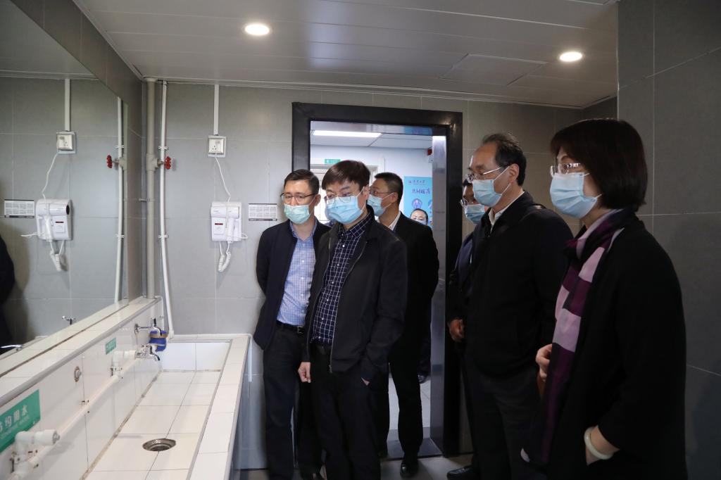 金东寒一行先后来到梅园餐厅、诚园8斋综合超市、平园23斋、图书馆、综合体育馆以及大型地震工程模拟研究设施,实地检查后勤防疫措施、宿舍和防疫物资,场馆准备以及重大建设工程的防疫、建设情况。