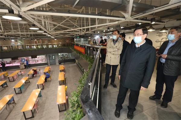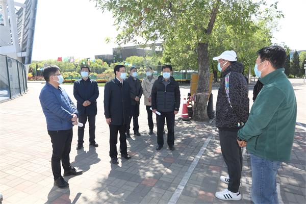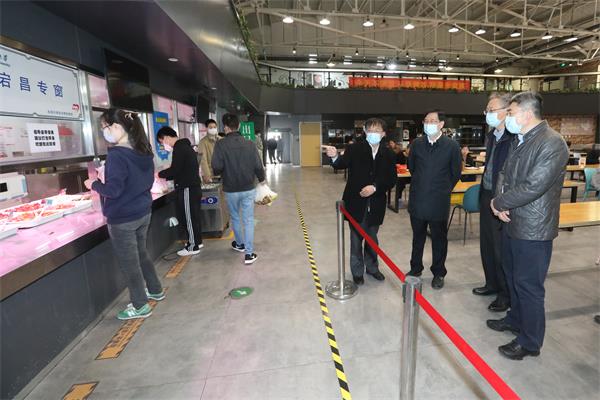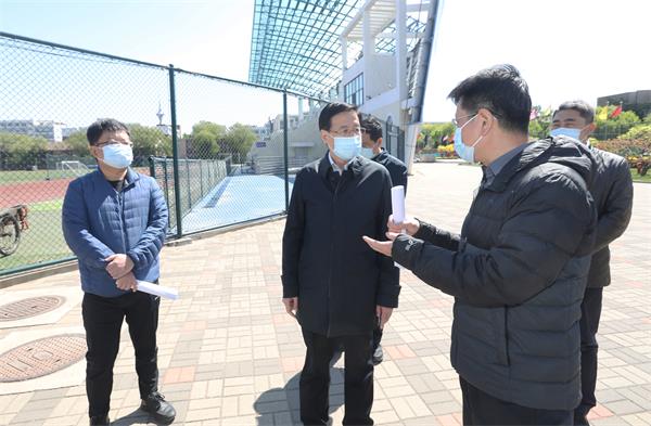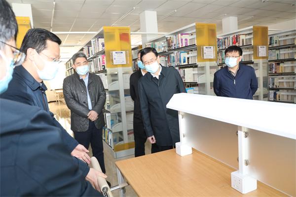 本站讯(摄影 唐蒙)4月23日,党委书记李家俊一行到卫津路校区实地了解图书馆、学生食堂、体育场等相关单位复学复课准备情况。副校长张凤宝,党办校办、学工部、保卫处、后保部等有关负责同志一同参加。
