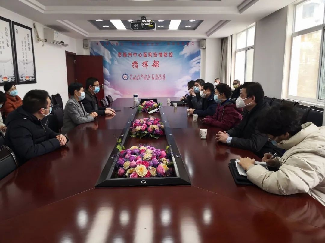 天津医疗队在抵达恩施后,前方指挥部首先召开了全体人员战前再动员会议。总指挥许颖悟和副总指挥雷平传达了天津市委书记李鸿忠、市长张国清对医疗队全体同志提出的“精心细心、谦虚谨慎、团结协作、做好防护”等具体要求。随后,医疗、实验室、疾控3个专业组分别召开了业务培训会, 对各类人员开展了技术辅导。同时,前方指挥部全体人员连夜召开工作会议,根据恩施州不同区县的疫情情况,研究人员调配、物资分配、党建、业务、纪律等事项及分工安排。