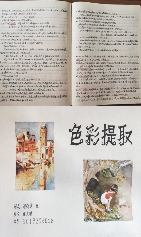 药学院的马佳丽上交了一份图文并茂的彩色全英文课程的笔记,堪称艺术品。“我觉得记笔记其实是一个逻辑梳理的过程,我自己会运用很多标记和符号来整理梳理好的内容,标明知识点之间的联系和因果。”在她眼里,认真记笔记是一件非常有成就感的事。到复习的时候,看着自己整整齐齐的笔记,之前学习时的记忆点都会更加清晰地浮现在脑海里。平常的学习中,她会时不时看看自己的笔记,把欣赏自己笔记的成就感转化为学习的动力。