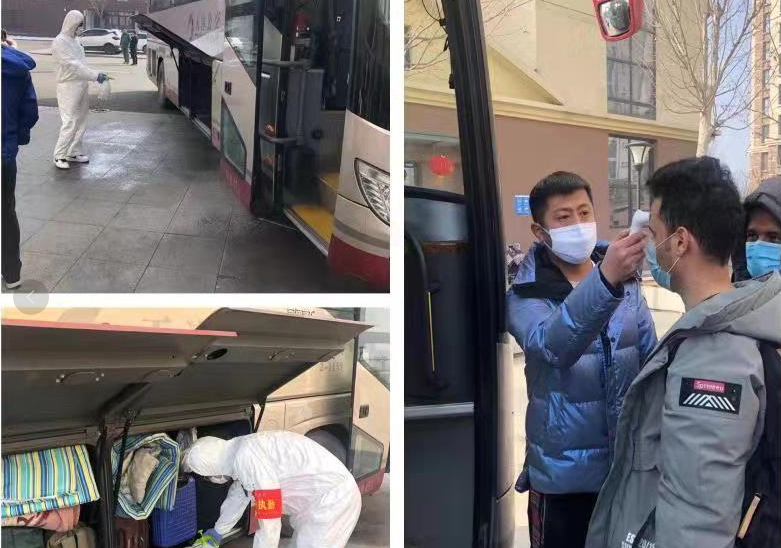 此次学生转运工作得到了公交客运二公司的大力协助。接到任务后,公交客运二公司领导高度重视,紧急安排车辆,并从615车队抽调司机,同时与国教学院及后勤保障部对接,制定乘车方案及安全措施。随后,二公司工作人员对车辆车厢、座位、玻璃、门把手、行李箱充分消毒,对所有上车人员测量体温,保障学生安全。在防控疫情的关键时刻,公交客运二公司和615车队工作人员一直坚守在岗位上,恪尽职守,勇于担当,为留学生跨校区交通提供了安全周到的保障。