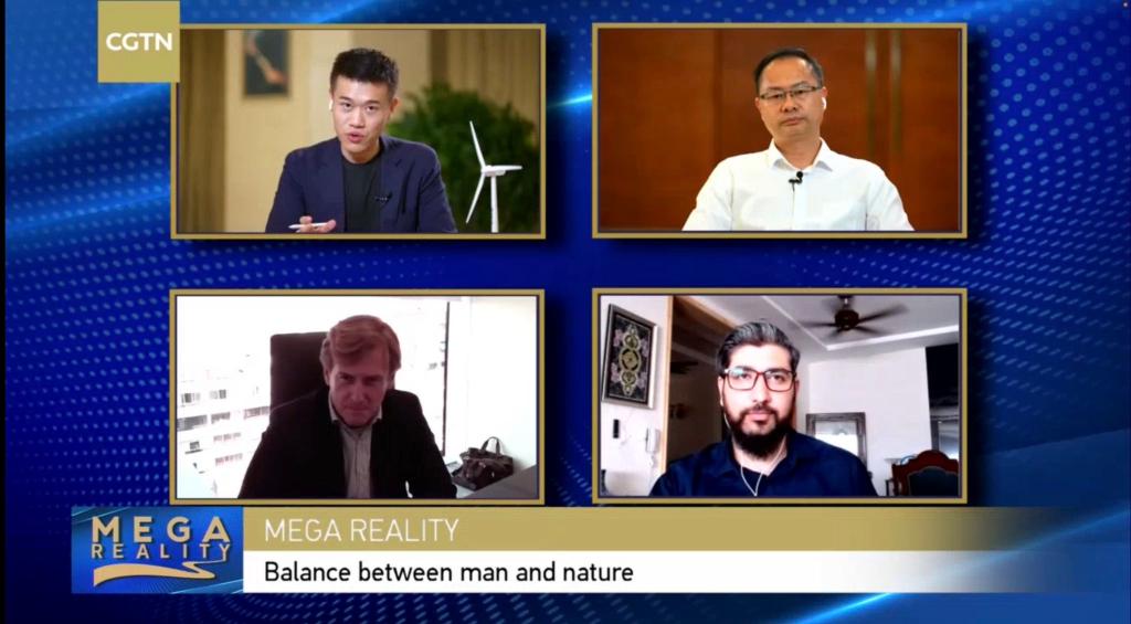 阿万作为发言嘉宾参加CGTN“建遇天下”节目(右下角为阿万)
