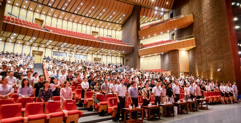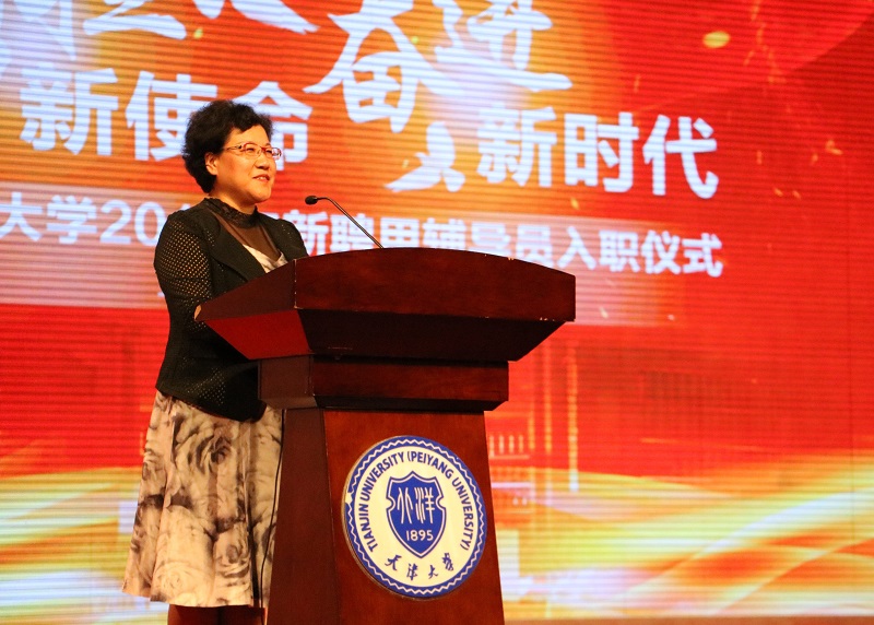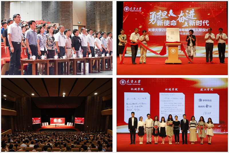 本站讯(通讯员 马广旭 摄影 唐蒙 李彬 李慧芳)为全面贯彻落实党的十九大和全国高校思想政治工作会议精神,加强和改进高校思想政治工作,加强辅导员队伍建设,6月8日下午,天津大学2018年新聘用辅导员入职仪式暨辅导员专场宣讲会在北洋园校区求实会堂举行。中国高等教育学会辅导员工作研究分会秘书处办公室主任夏晓虹,南开大学、河北工业大学、天津师范大学、天津理工大学、天津工业大学、天津财经大学、中国民航大学、天津外国语大学和天津中德应用技术大学等兄弟高校的学工部门负责人受邀出席。天津大学副校长张凤宝,党委常委、校长助理张力新,校长助理刘宁,党委常委、组织部部长赵美蓉,党委常委、宣传部部长贾启君,党的十九大代表、药学院党委书记冯翠玲以及统战部、教工部、学工部、工会、团委、教务处、研究生院、保卫处、后勤保障部、体育部、场馆中心、马克思主义学院、国际教育学院等有关单位负责同志出席活动。各学院(学部)主管学生工作的副书记、全体辅导员和学生代表参加了活动。