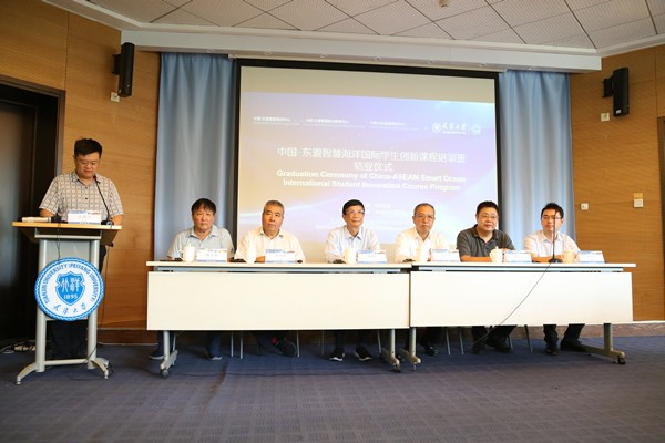 本站讯(通讯员 周媛媛)日前,在“中国-东盟智慧海洋中心”框架下,由天津大学海洋科学与技术学院主办的“中国-东盟智慧海洋国际学生创新课程培训项目”汇报总结会暨结业仪式在天津大学卫津路校区第七会议室举行。中国工程院院士潘德炉,中国海事局局级巡视员李世新,北海航海保障中心党组书记柴进柱,天津大学校长助理张力新,中国-东盟智慧海洋中心主任、天津大学海洋学院院长翟京生,副主任魏克新,天津大学国际合作与交流处副处长胡浩丰,国际杰青Boonsit Yimwadsana,海洋学院部分教师代表和参与该项目的全体留学生及学院2019级新生出席仪式。仪式由天津大学海洋学院党委副书记靳楠主持。