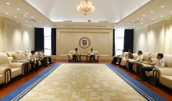 本站讯(摄影郭程)7月3日,天津大学校长钟登华在北洋园校区行政服务中心会见湖北文理学院院长丁世学、副院长王为一等一行。天津大学校长助理刘宁,党办校办、基建规划处、信息与网络中心相关负责人陪同会见。