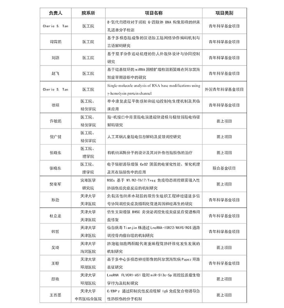 本站讯(通讯员 徐卉子)8月16日,国家自然科学基金委公布了2019年度国家自然科学基金申请项目评审结果,天津大学医学部获批项目18项,其中,面上项目7项,青年项目9项,联合基金项目1项,外国青年科学基金项目1项,直接经费合计698.5万元。